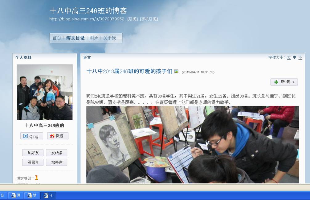班级博客的开启,不但给同学们提供了一个绿色的网络环境,也让老师们对素质教育有了更深的感悟。246班班主任彭老师更是将高考前的班级生活的点点滴滴在博客进行分享……