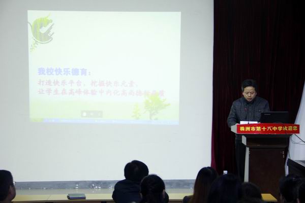 株洲市十八中是湖南省首批普通高中特色教育实验学校,在“臻和至美”理念指引下,我们践行“快乐德育”,把“健全人格教育、心理健康普及教育” 作为快乐德育的两大特色项目,顺利成为市首批快乐德育示范校。