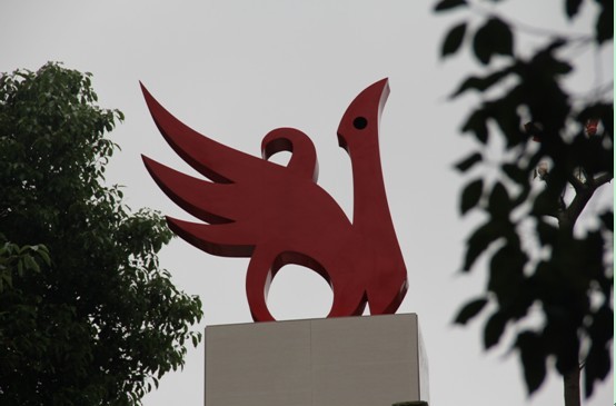 株洲市第十八中学在正对巍峨的校门树立校徽雕像,如大鹏“振翅高飞,莫之夭遏”。大有“大鹏高飞,一举千里。羽翼已就,横绝四海”之势。