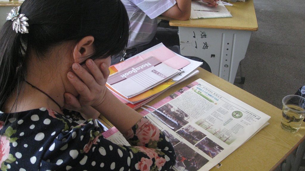 273班,家长们在饶有兴致的看着校报,因为这里面有自己孩子的力作。