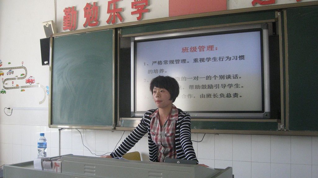 266班班主任孙老师在宣读本班的获奖情况,