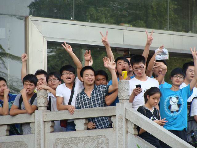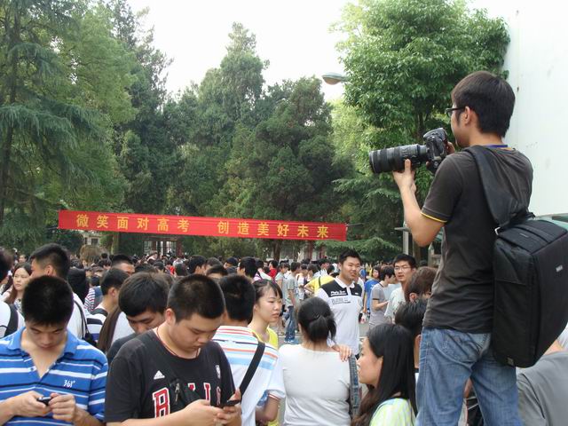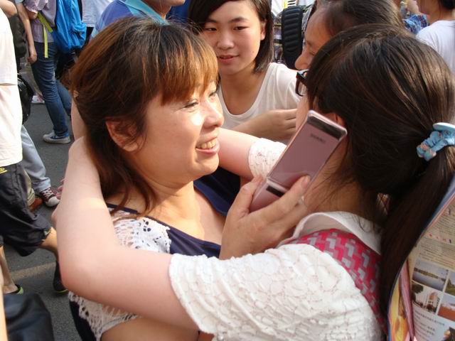 8日下午5点,是两天高考结束的时间。我看到考生走出考场,都很轻松,脸上挂满笑容,有的兴奋的将笔袋等抛向天空,我也替他们高兴!不少家长捧着鲜花,拥抱着孩子,欢声笑语一片,我也乐出声来!是啊,是应该庆祝,12年的苦读,就是为这两天的考试作准备啊!!!