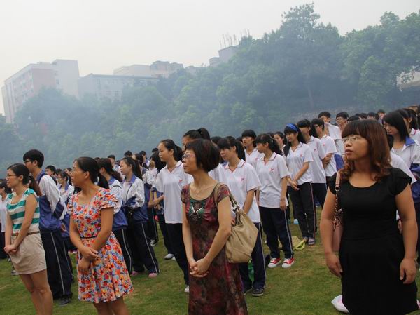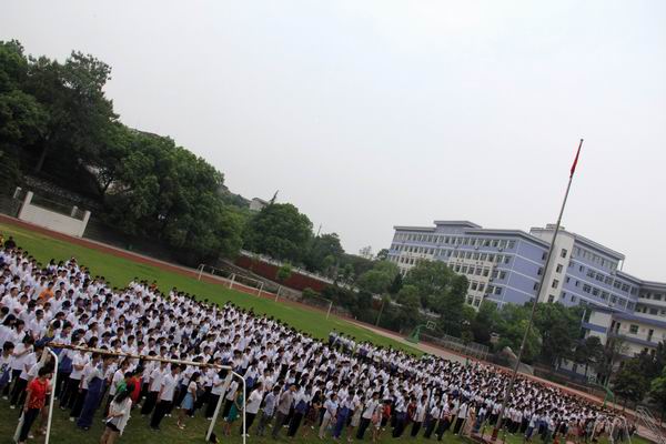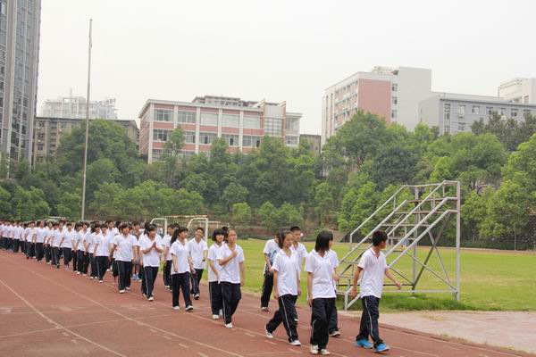 遥望操场,今年高一500多位新生,有的班达到了49人,加上高二,高三的同学,硬是把田径场一边都站满了,人气很旺。