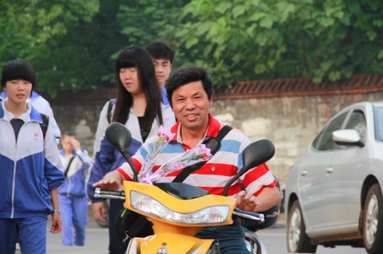 校长接过鲜花“只把春来报”