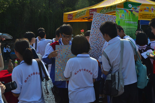 如果站在高处看整个帐篷活动展示区,你会发现有个地方与众不同,简直就像一个菜市场,熙来攘往,那就是十八中美