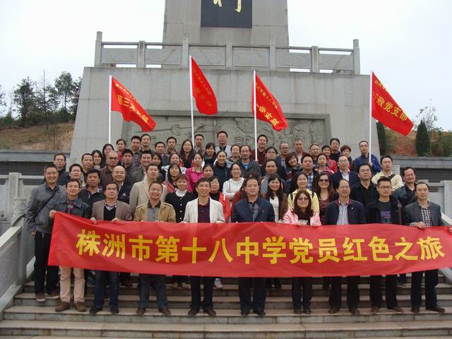 为了增加党员对革命历史和革命斗争精神的认识,发扬艰苦朴素的生活作风和艰苦奋斗的优秀革命传统,缅怀革命先烈的丰功伟绩,学习革命先烈艰苦奋斗的革命精神,坚定党员的理想和信念,深化为民服务,进一步推进党的基层组织建设,增强党组织的凝聚力和战斗力,2013年11月2日,株洲市十八中党委组织全体党员踏着革命先辈的足迹来到了革命老区——岳阳平江,寻访那轰轰烈烈的革命岁月,接受革命传统教育。本次“红色之旅”共历时二天,全校在职党员及部分民主党派共七十余人参加了这次活动。