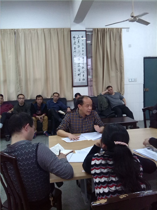 “我们英语组是清一色的女老师,但是我们现在都变成女汉子啦,”英语组的罗婷老师不无调侃的说到她们的辛勤付出,首先由数物地英生五个科目的备课组长发言,从总结前段教学工作,分析本次月考成绩、说明后阶段的应对措施三个方面做简明扼要的阐述。孙部长强调应对措施要落实到人,把重心放在课堂,个辅应该是解决课堂未解决的问题,老师应该调整方案,备课组长也要充分发挥统筹协调的能力。