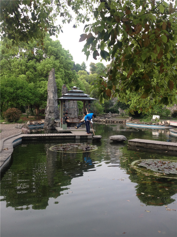 尽管春色迷人,可同学们却无心欣赏校园美景。落叶纷纷,同学们辛勤地挥舞扫帚,扫出一片洁净的天空。无论在校园的哪个角落都可以看到同学们认真清扫的身影,他们的身影与蓝天、白云、绿叶一起,构成了校园最美的风景。