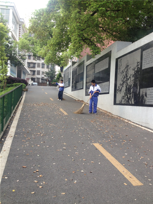 为给高三学子营造良好的学习环境,为让高二学子安心参加学考。自本月开始,高一年级的学生独立承担了学校的轮班劳动任务。