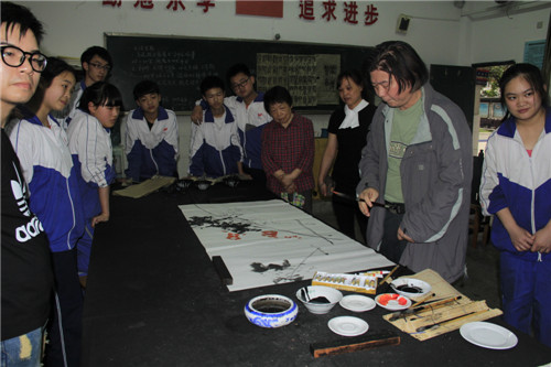 三位专家参观了学校的模块教室,并泼墨挥毫,当场书画。令师生们佩服之至。
