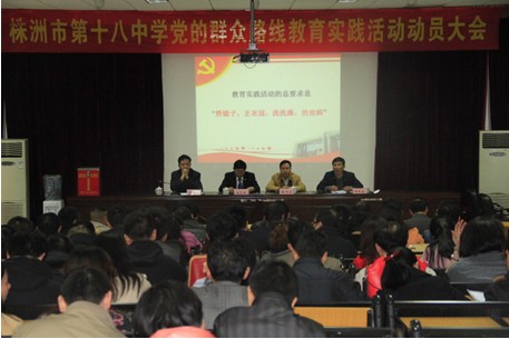 4月24日下午,按照市教育局的统一部署与要求,株洲市十八中党委在学校多媒体教室召开第二批党的群众路线教育实践活动动员大会。