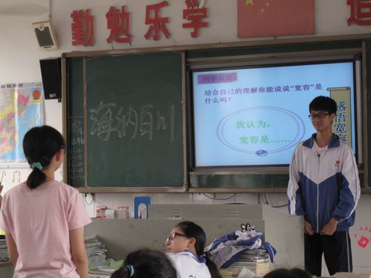 在高一高二各班,由学生自主设计,正、副班主任指导的“包容”主题班会同时上演。宽容故事品读,宽容短片赏析,宽容内涵讨论,宽容度测试,寻找身边宽容的人,趣味游戏等等,形式多样,丰富多彩的活动让学生认识宽容,感悟宽容,学会宽容。