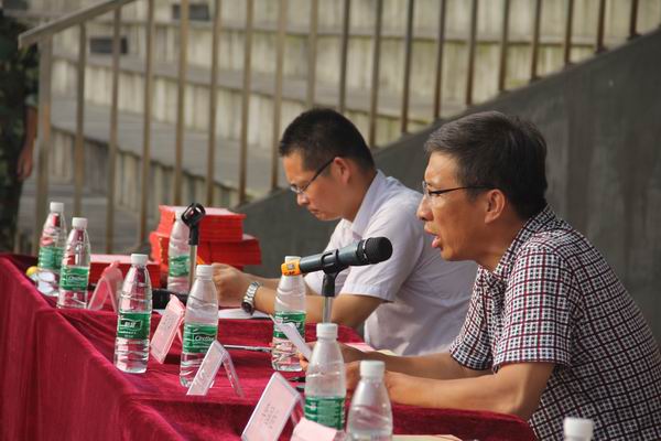 会操仪式在田径场举行,由学校工会彭泽波主席全程主持。庄严的升旗仪式结束后,李国柱校长,市武警支队上尉警官周思恩,党委杨电波书记来到田径场,从队列前一一走过,对600多名新生进行检阅。
