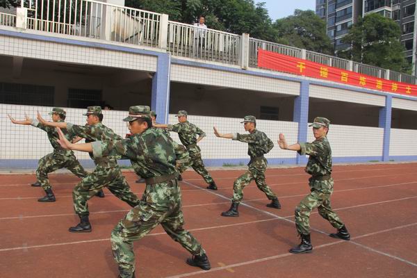 稍后,进入会操决赛的6个连队进行了展示,整理着装,停止间转法,齐步走,敬礼等等,短短6天时间,同学们已经熟练掌握了动作要领,增加了几分军人的风采,引来主席台上领导和队伍不远处正在观看会操的家长代表们的赞赏。