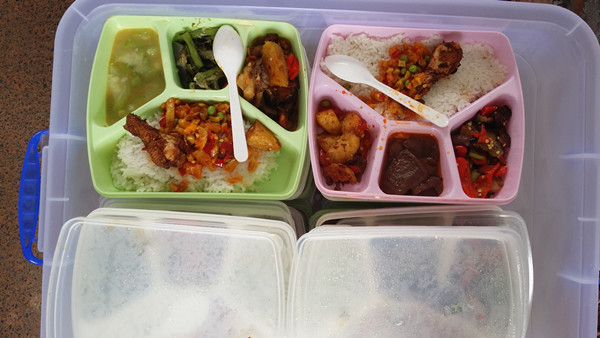 资源建设中心的老师为高三学子送来精心准备的爱心中餐