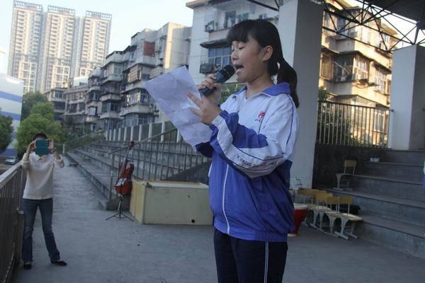 本次活动的主持人,音乐班余素同学说,“请母校为我们作证,未来一年我们一定会勤学苦练,努力奋斗,母校等着我们胜利归来!”市名师工作室主持人,心理中心顾问刘立红老师认为,这种方式能给学生更多展示的机会!期待以后升旗仪式更丰富多彩!
