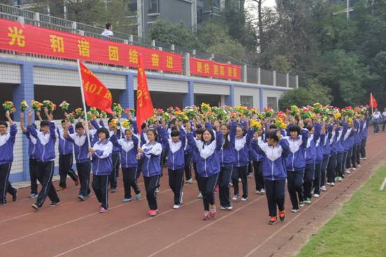在绚丽绽放的礼炮声中,李国柱校长怀着激动的心情宣布本届校运会正式开幕,掌声雷动全场。