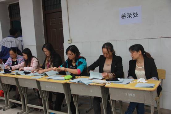 清一色的美女检录员老师认真做着赛前检录工作。