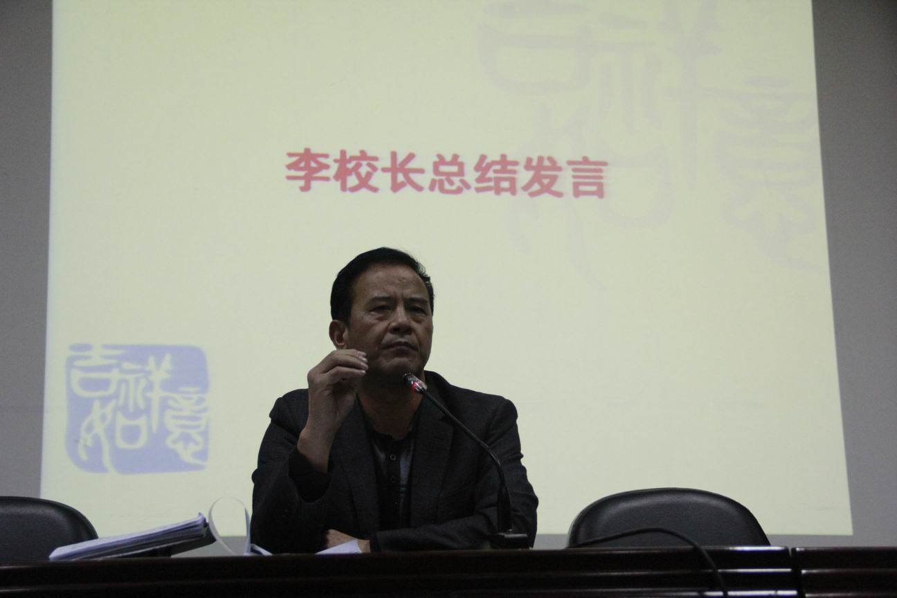 会议分上下两段进行。上半段为高三、高二级部和教师代表发言。下半段由彭仁堃副校长做年度教学工作总结报告和李国柱校长点评。上半段由教学发展中心赵宏俊主任主持,下半段由李国柱校长主持。