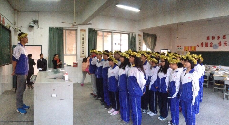 (上图为1410班头戴金色花环,认真地诠释歌曲)