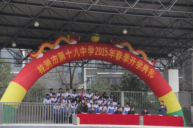 3月2日上午9点20分,株洲市第十八中学近两千余名师生,欢聚校园,在田径场上隆重举行2015年春季开学典礼。出席本次开学典礼的领导有:李国柱校长、杨电波书记、彭仁堃副校长、李丰源副校长、李志华副校长、欧林奇副校长、彭泽波主席、学生工作发展中心宋晓熙主任。