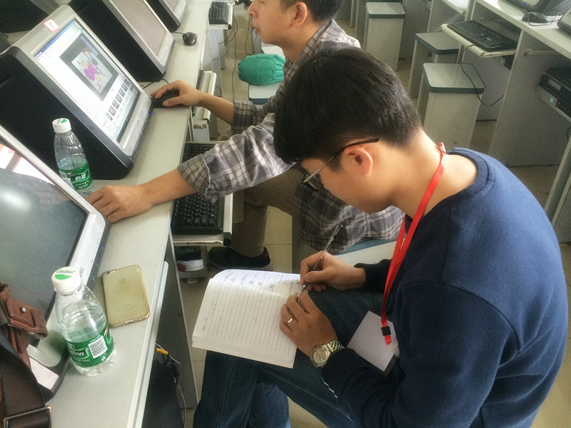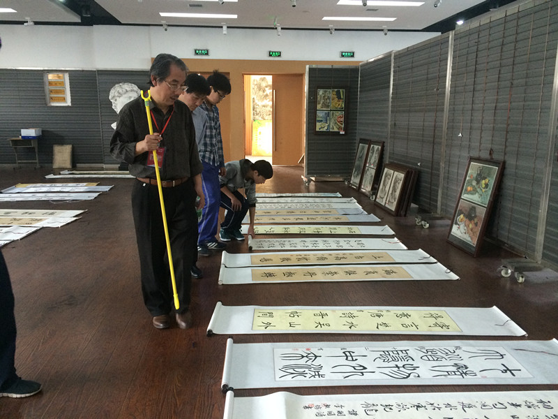 4月26日上午7点50,所有评审、监评、工作人员准备就绪,评审工作正式展开。上午10点,笔者来到位于惜汗楼三楼展厅的书法国画评审处,评画工作正如火如荼进行着。书协主席汤树林老师仔细欣赏每一副作品,并逐一点评,对于好的作品更是细致品味。而在计算机楼的绘画、摄影作品评审处,评审们仔细查看着电脑里的每一幅画,并对入选作品进行点评,工作人员则在一旁认真记录,所有人员一丝不苟地完成自己的工作,以确保结果的真实可靠。