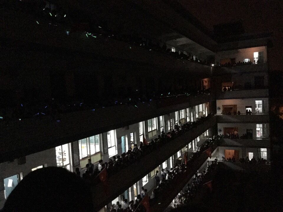 株洲市第十八中学校学生会特意选在5月20日这个特别的日子的晚自习,摆好各种荧光棒,站在楼下给高二学考、高三高考加油!整个气氛瞬间到达顶点!一方面让高一的学生感受到了高考、学考的压力,另一方面让高二、高三的学生受到了鼓舞与激励,让三个年级的学生产生了良好的互动,给高三即将毕业的学生留学了难以磨灭的人生回忆。
