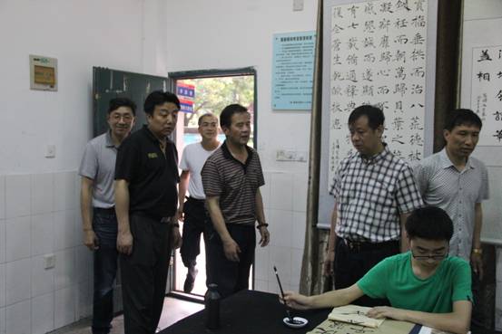 书法模块教室里面学生并没有因为领导们的到来而影响学习状态,学生十分投入。
