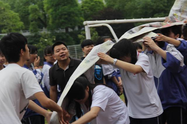 5月29日下午,高二年级在校田径场举行了“无敌风火轮”心理趣味游戏比赛。15个同学脚步一致在用报纸做成的风火轮内前行,团结合作,积极进取,在游戏中舒缓了心情,凝聚了力量。