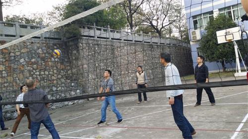 在刚刚进行的校教职工男子排球赛第一场小组赛中,高三级部的男同志们众志成城,齐心协力,赢得了开门红!