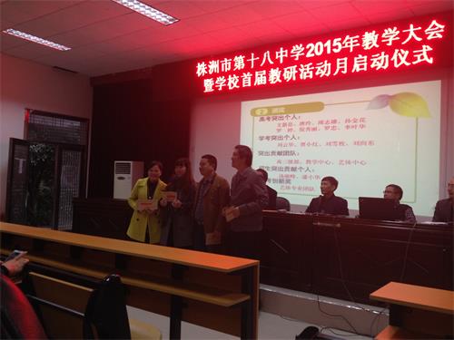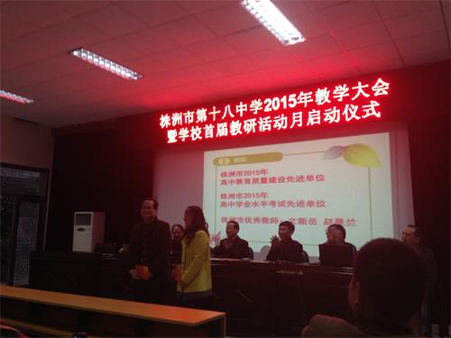 接下来,杨电波书记宣布了表彰决定。我级部赵曼兰老师获评优秀教师,刘部长从明确目标,完善管理、积极动员,思想重视、落实目标,强化责任、制定计划,研究管理等四个方面对2015年学考工作做了详细回顾,等四位老师获评学考突出贡献奖。