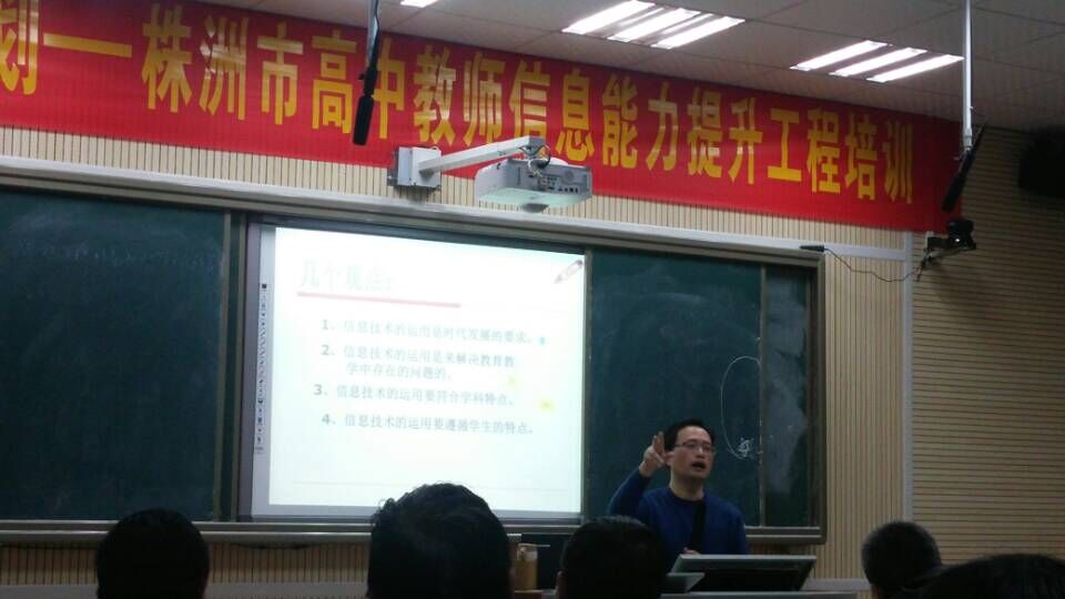 2015年12月5日,我们来自市区高中的百多位教师在一中开始了教育技术培训,上午蒋校长长达3个多小时的讲座使我们真正认清了“教育技术”与信息技术的区别,什么是“信息技术与课程整合”、如何科学地进行课堂教学设计,以及教育技术在中学课堂教学中运用的真正意义。教育技术:指运用各种理论及技术,通过对教与学过程及相关资源的设计、开发、利用、管理和评价,实现教育教学优化的理论与实践。信息技术与课程整合:指在学科教学过程中把信息技术、信息资源和课程有机结合,建构有效的教学方式,促进教学的最优化。“老师引导——-小组讨论——实践操作——总结反思”的学习形式,不仅学到了很多新知识,而且是一个以符合教学、学生和学生学习发展需求的教学方式。也使我们懂得了为什么要进行教育技术培训,怎么应用教育技术服务于教学,怎样更新教育理念。