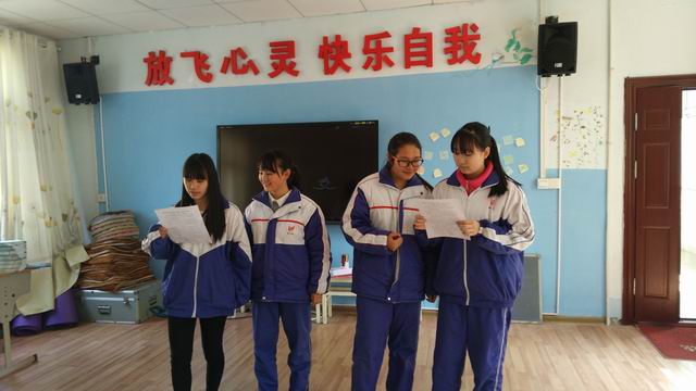 然后是趣味心理游戏,在游戏中大家得到了放松,也加深了认识。数字抱团游戏中,有4位同学没有“抱团”,爽快的接受了“惩罚”,他们商议用家乡话念“学校心理公约”,衡阳话,株洲攸县话,株洲马家河话,特别是最后一位女生的四川话,让大家强烈要求再念了一句“让我们携起手来互帮互助,树立信心,快乐成长,共同铸就阳光美丽心灵!”一时间活动室充满了新奇,逗趣,温暖,力量。