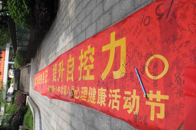 心理中心专职心理教师刘老师对活动进行了指导,从心理学的角度带领大家认识到“每个人的自控力是有限的”,“自控力可以不断提升”,并给出了科学有效的建议。最后高二级部丁俊老师再次强调了提升自控力对我们学习、生活的重要性。课间,各班派3名代表进行了主题横幅签名。