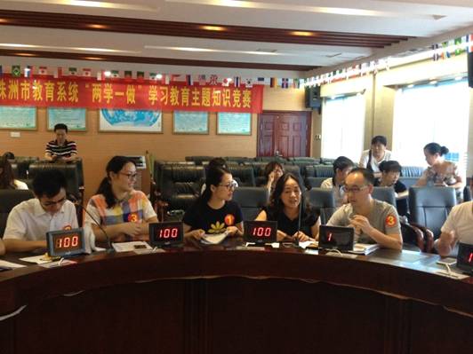 图为我校三位老师参加株洲市教育系统“两学一做”学习教育主题知识比赛,经过必答抢答等环节,我校取得了第四名的好成绩。