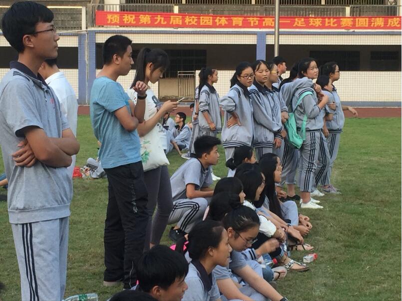 (上图为实习老师为本班足球比赛加油鼓劲)