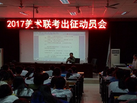 高三级部在高三美术生出征之前能审时度势,顺应形势,为美术生打气鼓劲,助威呐喊,这大大激发了同学们的士气。