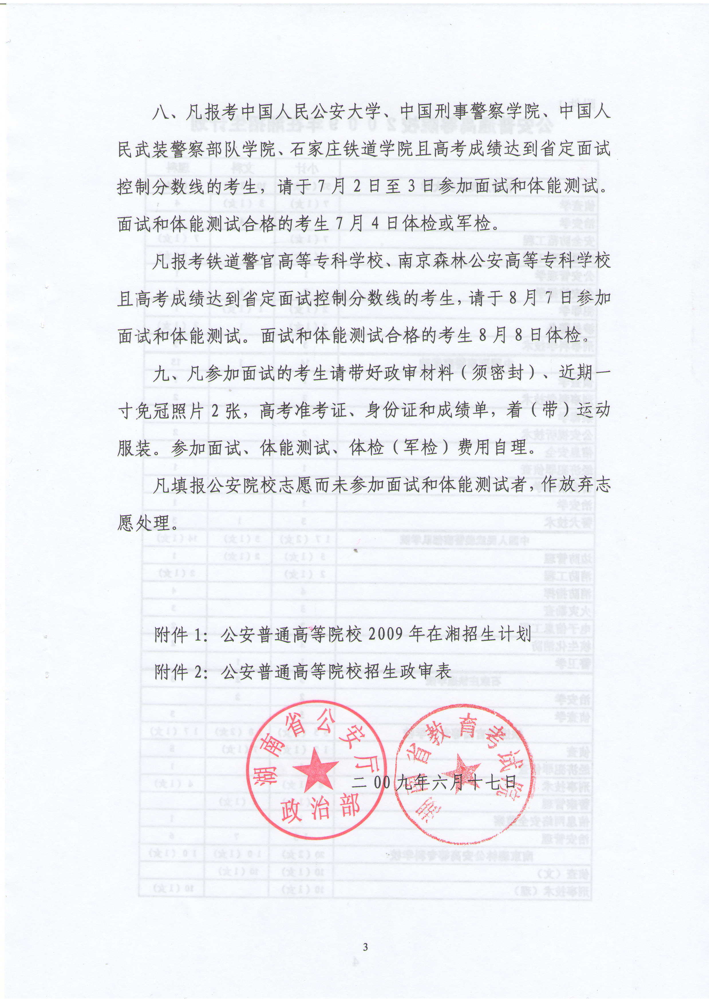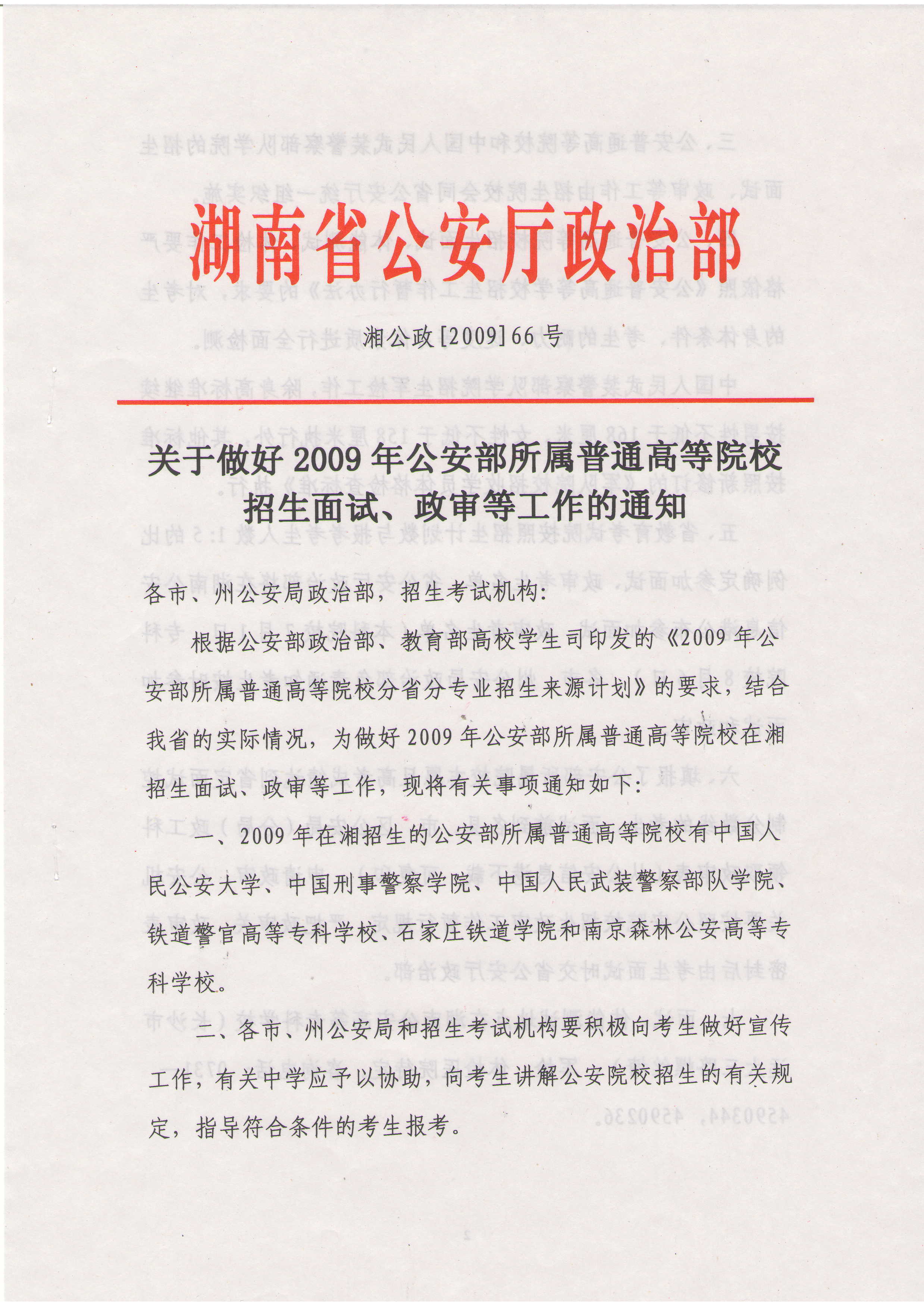 关于做好2009年公安部所属普通高校招生面试、政审等工作的通知