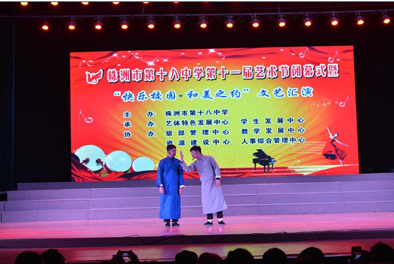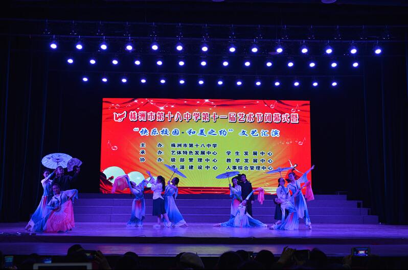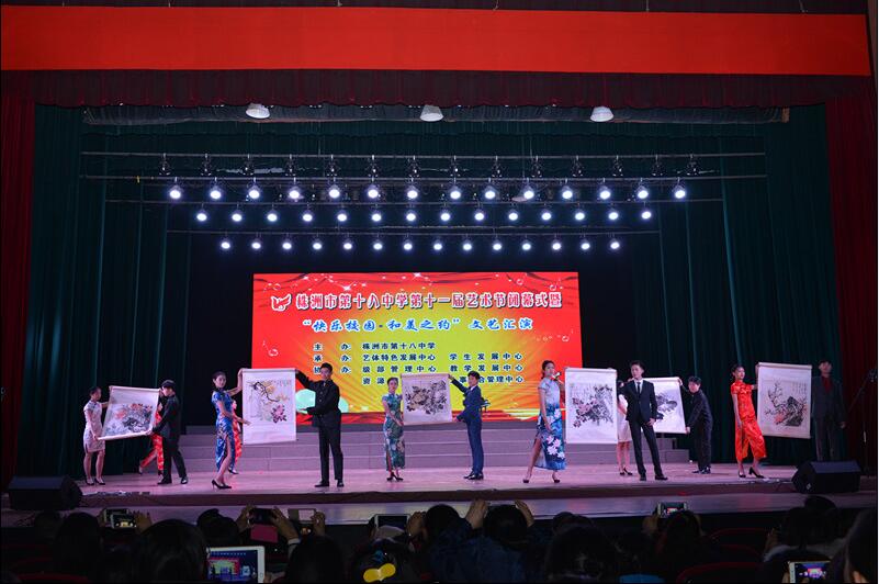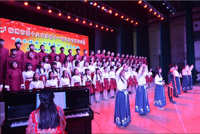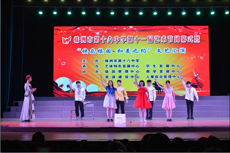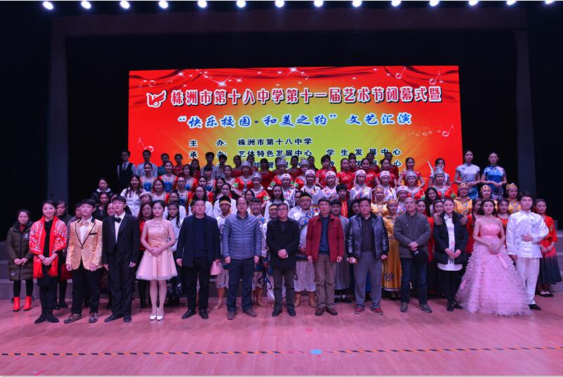株洲市十八中第十一届校园文化艺术节在一片热闹、祥和的气氛中落下了帷幕。此次活动展现了我校师生良好的精神风貌,极大地丰富了师生校园生活,谱写了我校艺术特色教育新的篇章。相信这一次的经历会深深地刻印在全体演职人员的脑海里,成为永久的美好回忆!