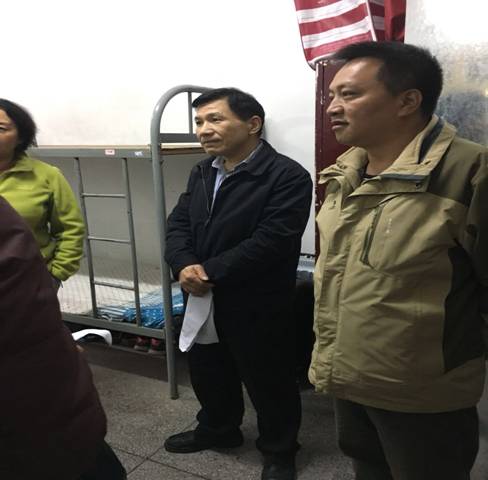 吴局长视察学生宿舍(中间为吴局长,左一为十八中彭仁堃书记)