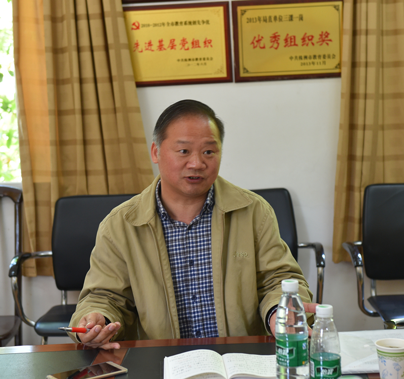 4月18日上午是市教培中心主任姜野军、网络教育科科长程春喜、雷君知老师等一行三人来到株洲市第十八中学进行教师培训工作调研。