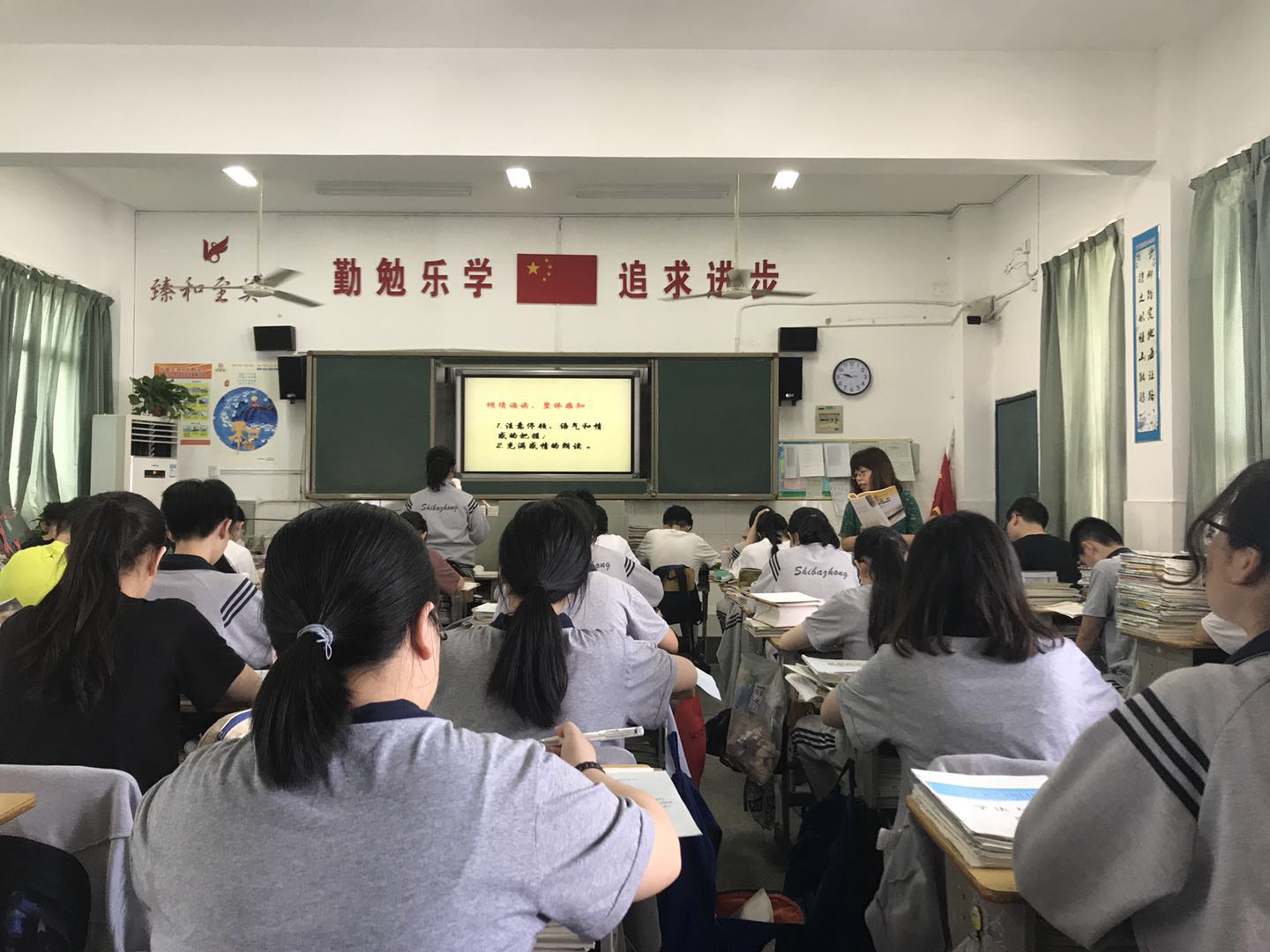 课堂上,刘老师激情澎湃。不仅为我们讲解了诗词的含义,更在课堂之余补充了最近的中美贸易战的知识。将课堂自然而然的引入到了如今的爱国情怀之中。向同学阐述了我们为什么爱国,有应该如何爱国的问题。同学们听得入神,而前来听课的老师们也纷纷表示赞叹,课后听课评课活动也十分踊跃。
