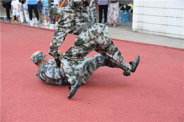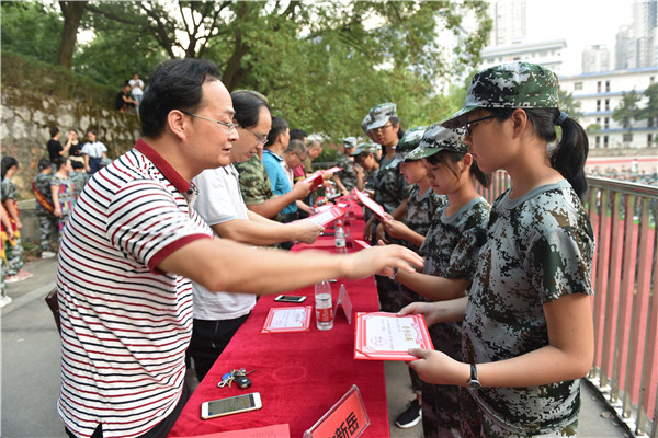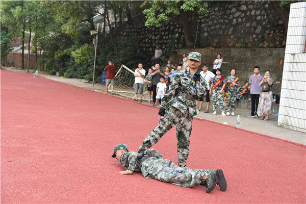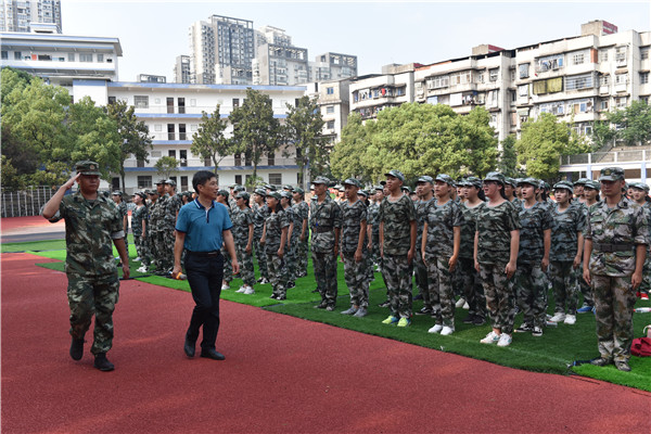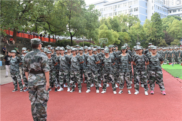 最后,校党委彭仁堃书记总结发言,他高度肯定了此次军训工作,学生工作发展中心、高一级部、全体班主任、全体教官为此付出了辛劳;肯定全体高一新生刻苦训练,磨炼自我,勉励同学们继续发扬吃苦耐劳的精神,在以后的学习生活中奋发向上。