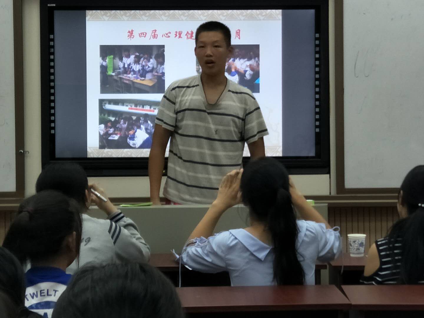 每个上台的学生都做了充足的准备,有些同学的自我介绍很精彩,通过故事的方式讲述自己的心路历程;有些同学的才艺展示让人惊艳;有些同学的内心分享特别感人。虽然有些同学有些害羞和内向,但是他们有着同样的特点:他们都敢于去展示自己;他们都对心理很感兴趣;他们都想更好的认识自己和帮助他人。