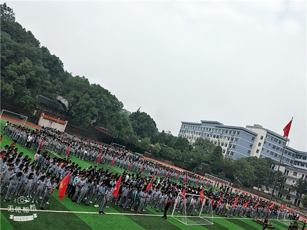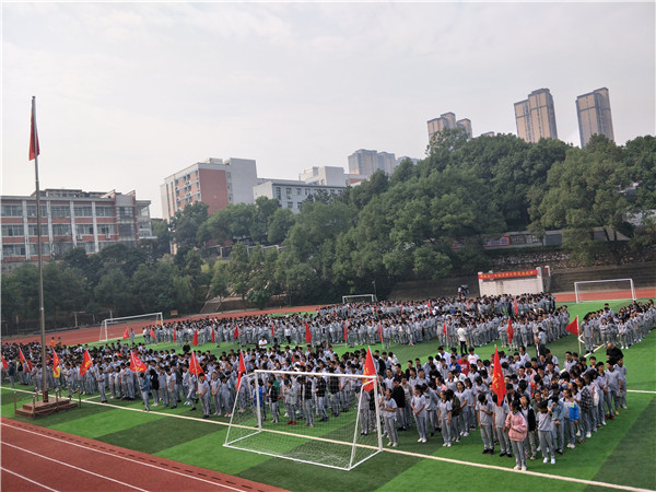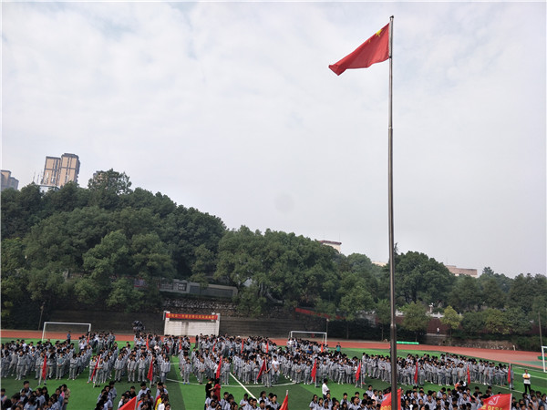 气势磅礴,深情款款,四名学子领唱,1706全班伴唱,《歌唱祖国》在市十八中上空嘹亮响彻、回旋,全体十八中人庄严肃立,举目仰望,五星红旗迎风飘扬。