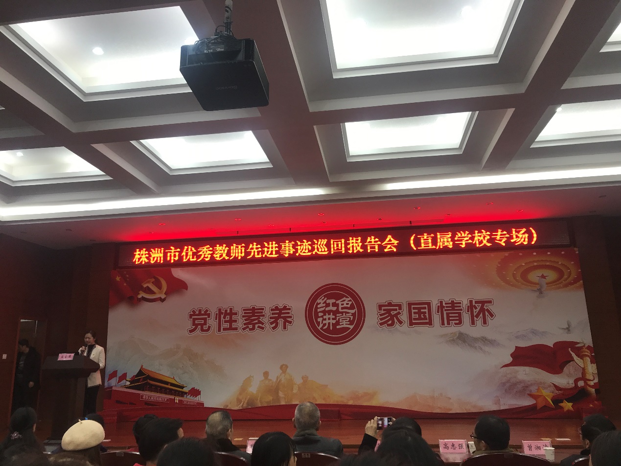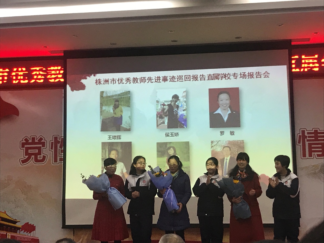为弘扬人民教师高尚师德,激励广大教师争做"四有好老师",做好"四个引路人",全面加强师德师风建设,上周五,在株洲市二中多媒体教室进行了株洲市优秀教师先进事迹巡回报告会(直属学校会场)。株洲市十八中组织十余名教师到会学习。