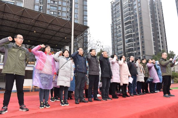 上周五,虽然天空下着细雨但仍然浇不灭十八中操场上那响彻四方的呐喊。那是由十八中高二级部所举行的百日誓师大会,校长杨电波、教学发展中心主任孙金花老师,与全体高二师生参加了本次大会。会议由丁俊副部长主持。