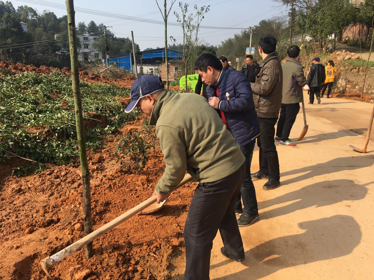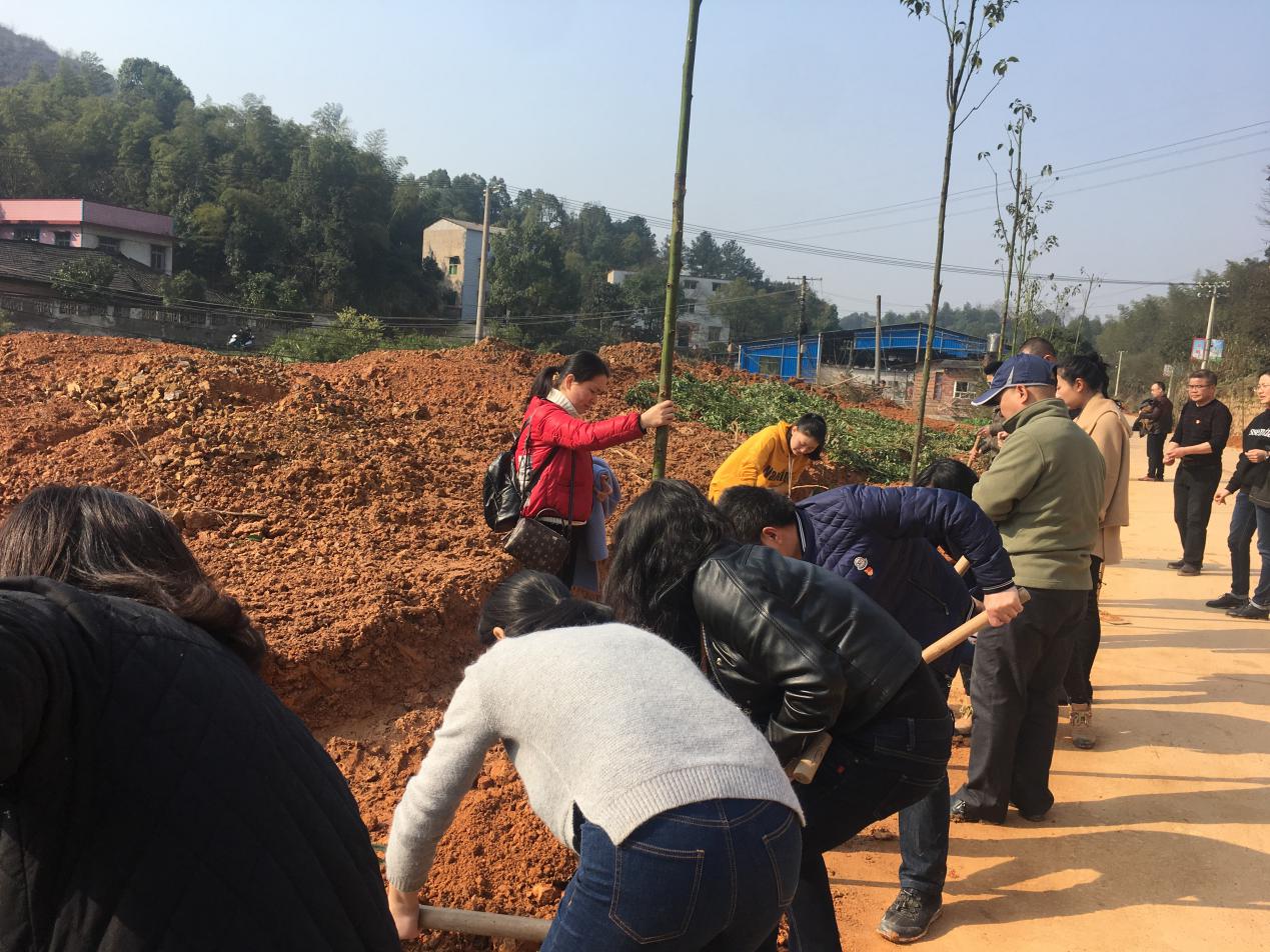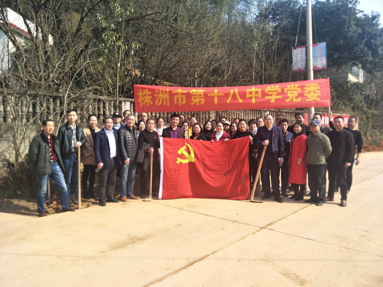 3月12日一大早,株洲市第十八中学党委彭仁堃书记组织在职四个党支部上午没课的37名党员教师来到"天龙路"进行义务植树活动。所有老师一到植树地点立即扛起锄头、拿起铲子开始植树,大家分工合作有的人挖坑、有的人扶树苗、有的人铲土。因为樟树需要挖比较深的坑,男老师们主动承担起樟树的载植。女老师们也都是植树的能手,挖坑、培土毫不逊色于男老师,很多老师都脱下外套,不顾鞋子布满黄泥。短短2个小时株洲市第十八中学党委就把150颗树苗全部植好。老师们纷纷表示以后每年都要参加这种义务植树活动,既美化了家乡环境,又有益于身心健康。