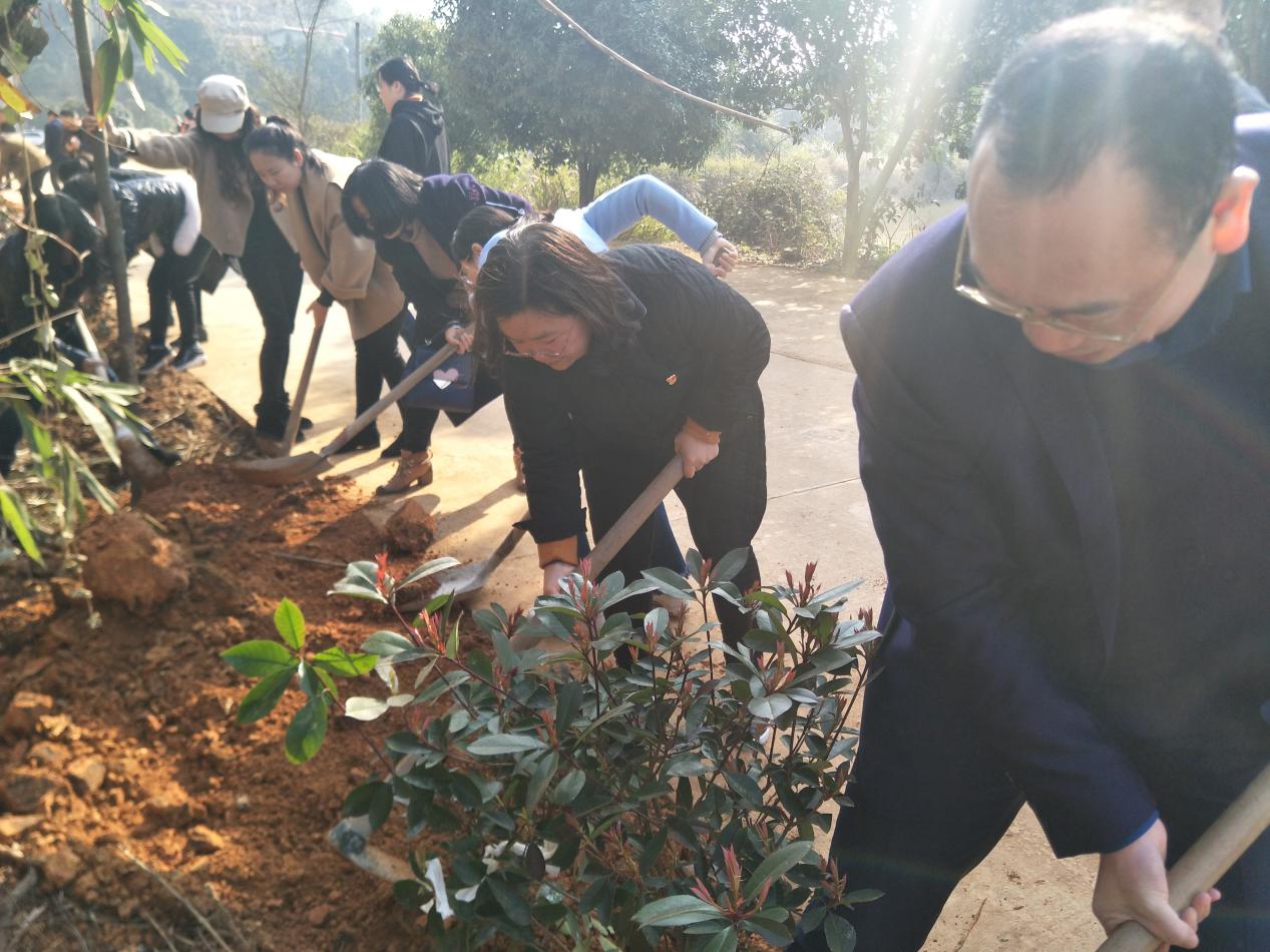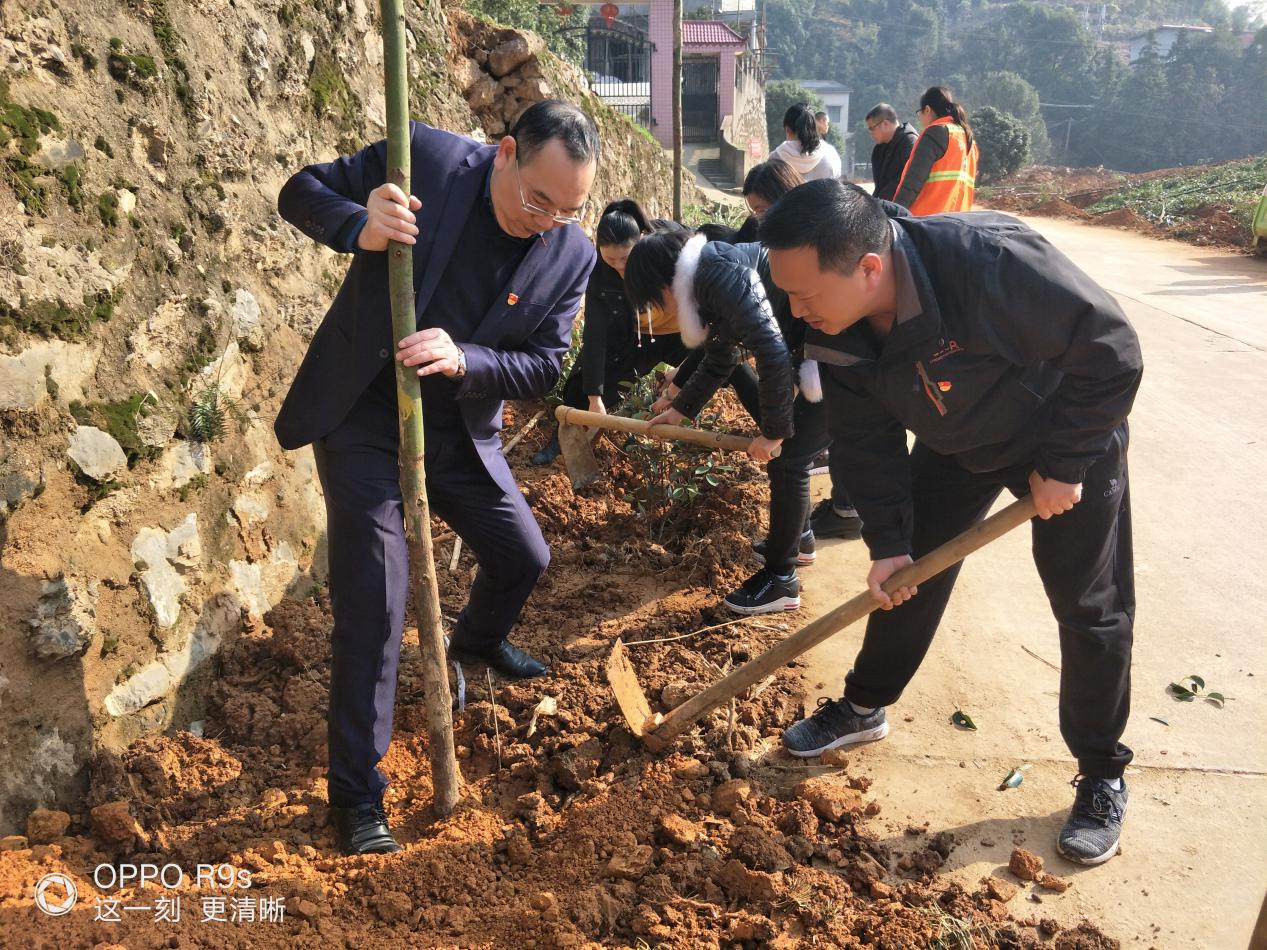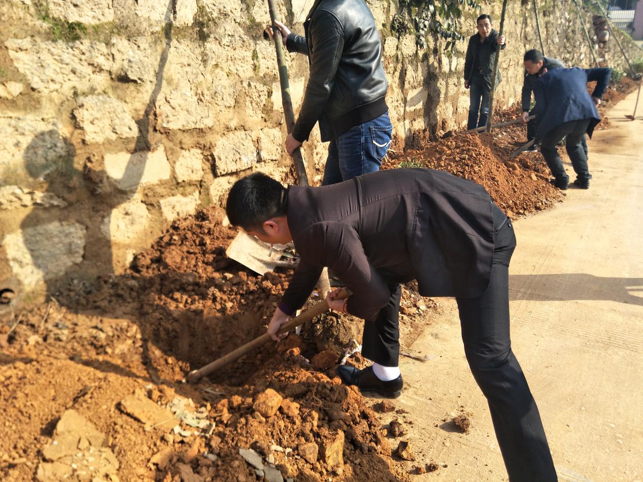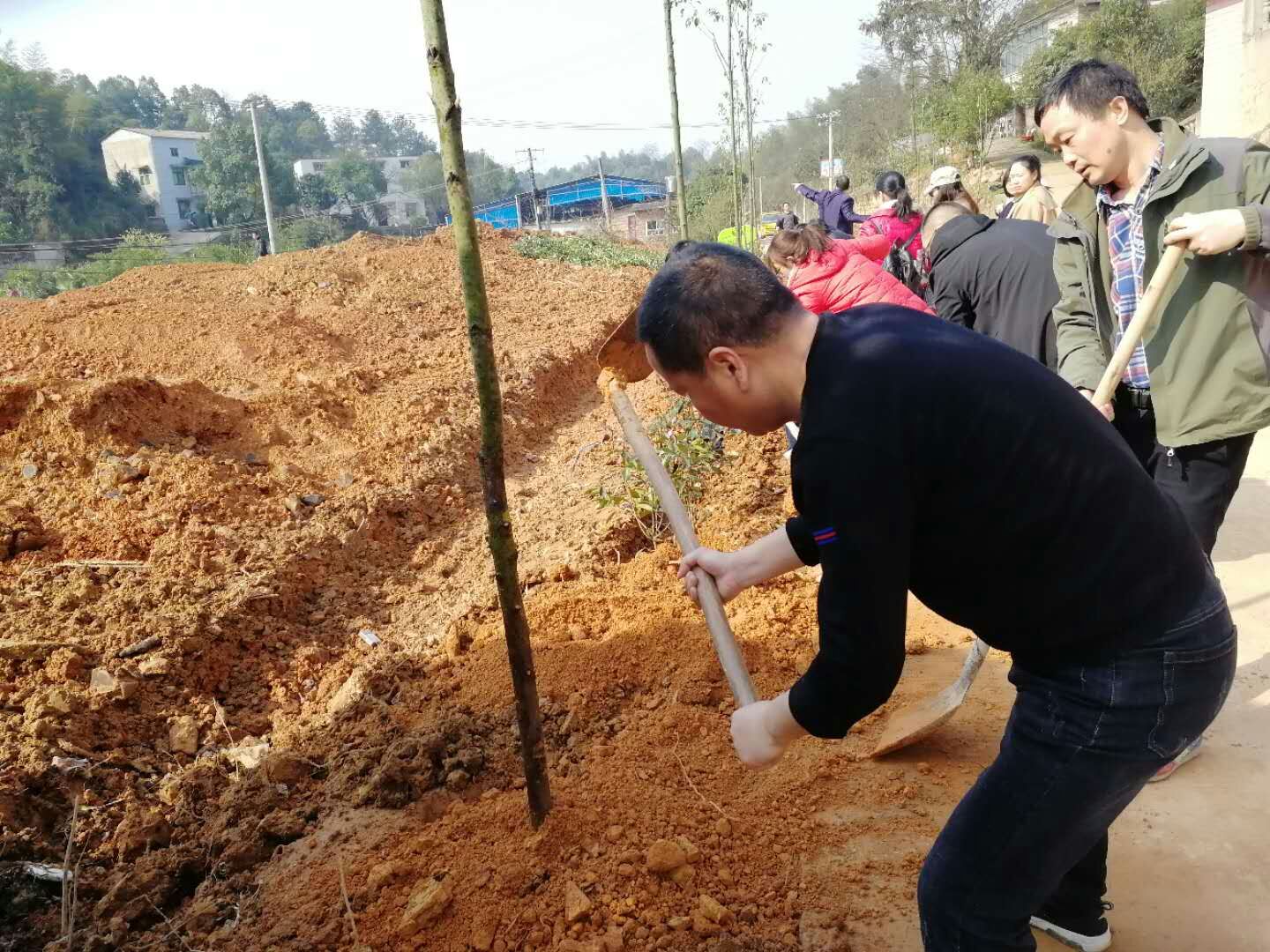 3月12日一大早,株洲市第十八中学党委彭仁堃书记组织在职四个党支部上午没课的37名党员教师来到"天龙路"进行义务植树活动。所有老师一到植树地点立即扛起锄头、拿起铲子开始植树,大家分工合作有的人挖坑、有的人扶树苗、有的人铲土。因为樟树需要挖比较深的坑,男老师们主动承担起樟树的载植。女老师们也都是植树的能手,挖坑、培土毫不逊色于男老师,很多老师都脱下外套,不顾鞋子布满黄泥。短短2个小时株洲市第十八中学党委就把150颗树苗全部植好。老师们纷纷表示以后每年都要参加这种义务植树活动,既美化了家乡环境,又有益于身心健康。