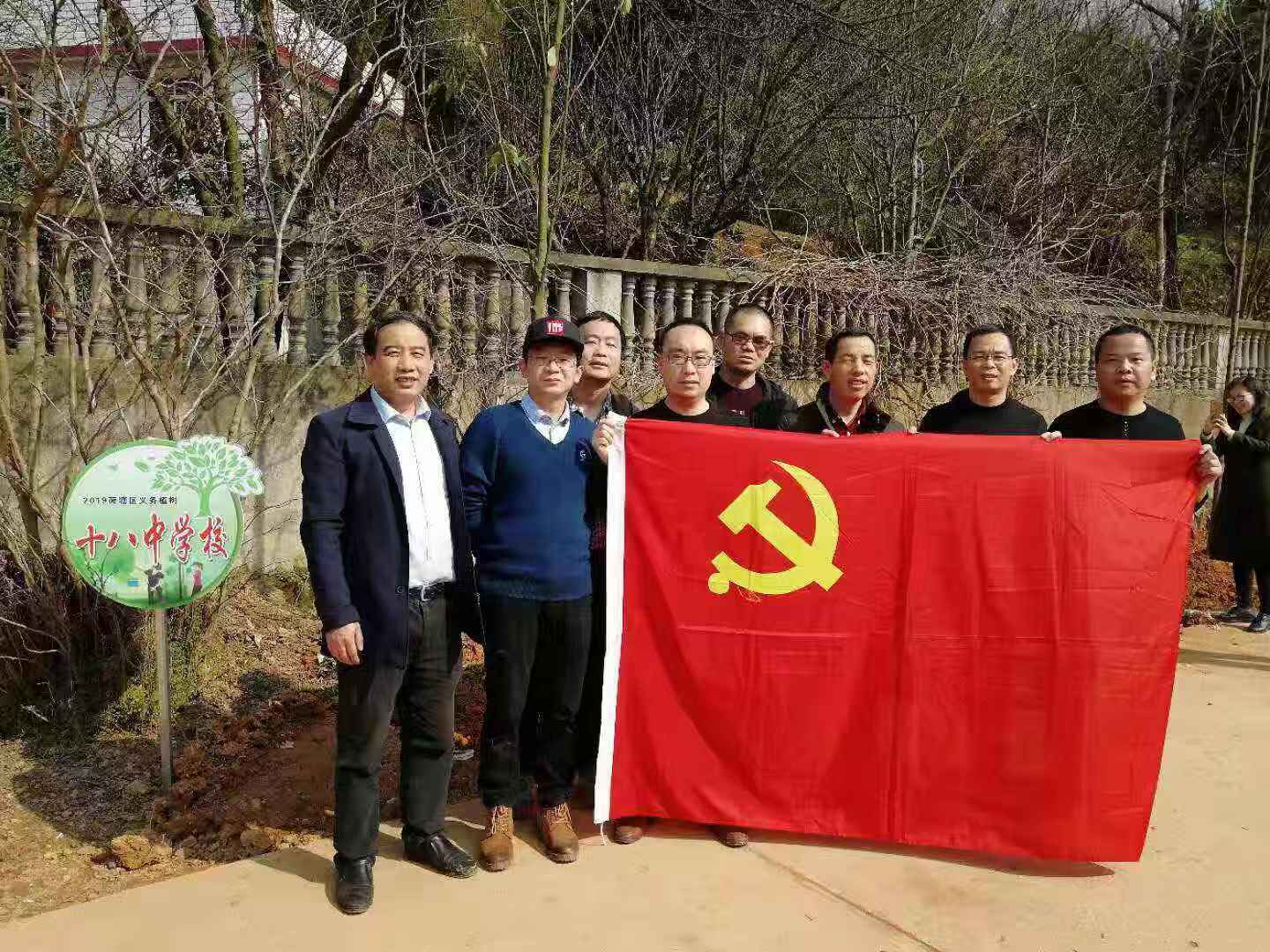 3月12日,为响应学校党组织号召,贯彻"绿水青山就是金山银山"的环保策略。十八中教学三支部全体党员老师在支部书记潘小华老师的带领下来到了荷塘区一处小山坡展开植树节主题活动。由老师们亲手在园林里种下一颗颗小树苗。